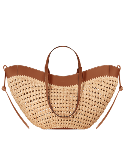 For this edition, the Cyme, a sculptured tote bag, has been embellished with raffia, a naturally flexible plant fiber. Its wavy patterns are handcrafted by artisans in Madagascar using an innovative combination of crochet stitches. Needle embroidery connects the lines of openwork raffia to the leather. This edition embodies the intersection of raffia artisanship and leather goods expertise.