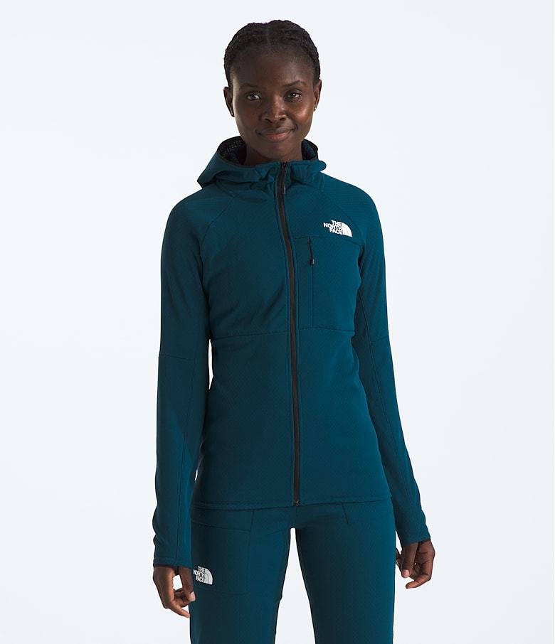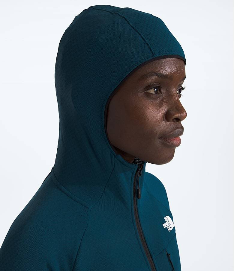 The slim-fit Women’s Summit Series FUTUREFLEECE™ Full-Zip Hoodie features an innovative technology that uses a full-loop fabric to minimize weight and help optimize body temperature. It’s designed to be worn over a base layer or under whatever insulation the mission calls for. Flat-locked stitching and no shoulder seams help maintain your comfort when wearing a pack, while a pre-tensioned hood can easily be worn under a helmet.
