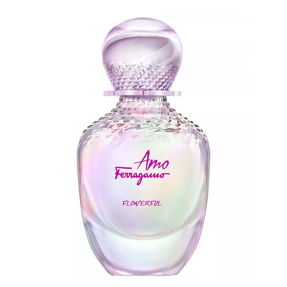 Amo Ferragamo Flowerful is a profusion of flowers revealing colorful shades and spreading an addictive trail. A pure expression of the joy of living, contagious optimism and sparkling energy. An exuberant flacon featuring a sculptural flower shaped disk, inspired by the classic Ferragamo design of Flower heel.Top notes Italian bitter accord, black currant, and yuzu flower. Heart of plum blossom, jasmine, pink peony. Base vanilla orchid, blonde woods, and musk. Amo Ferragamo Flowerful bottle shines with fluorescent colors. Suki Waterhouse is the face of the campaign.