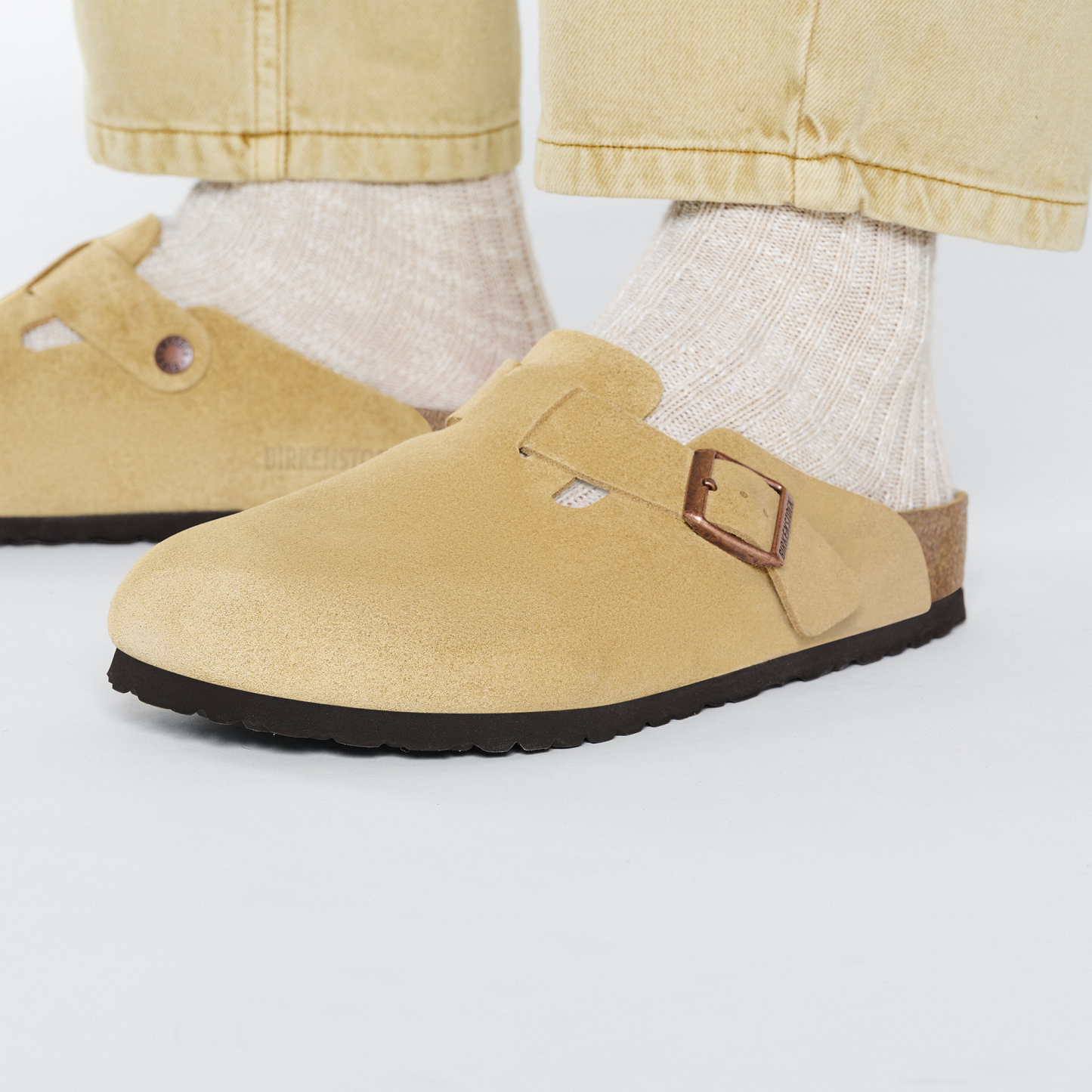Les sabots Boston sont un vrai classique à porter sans problème tout au long de l'année. Grâce à une semelle en mousse de plus, le moelleux lit de pied veille à un confort supplémentaire et chouchoute vos pieds de l'aube au crépuscule. Le dessus en cuir velours particulièrement souple veille à un design naturel, avec en prime l’impression de porter une seconde peau.