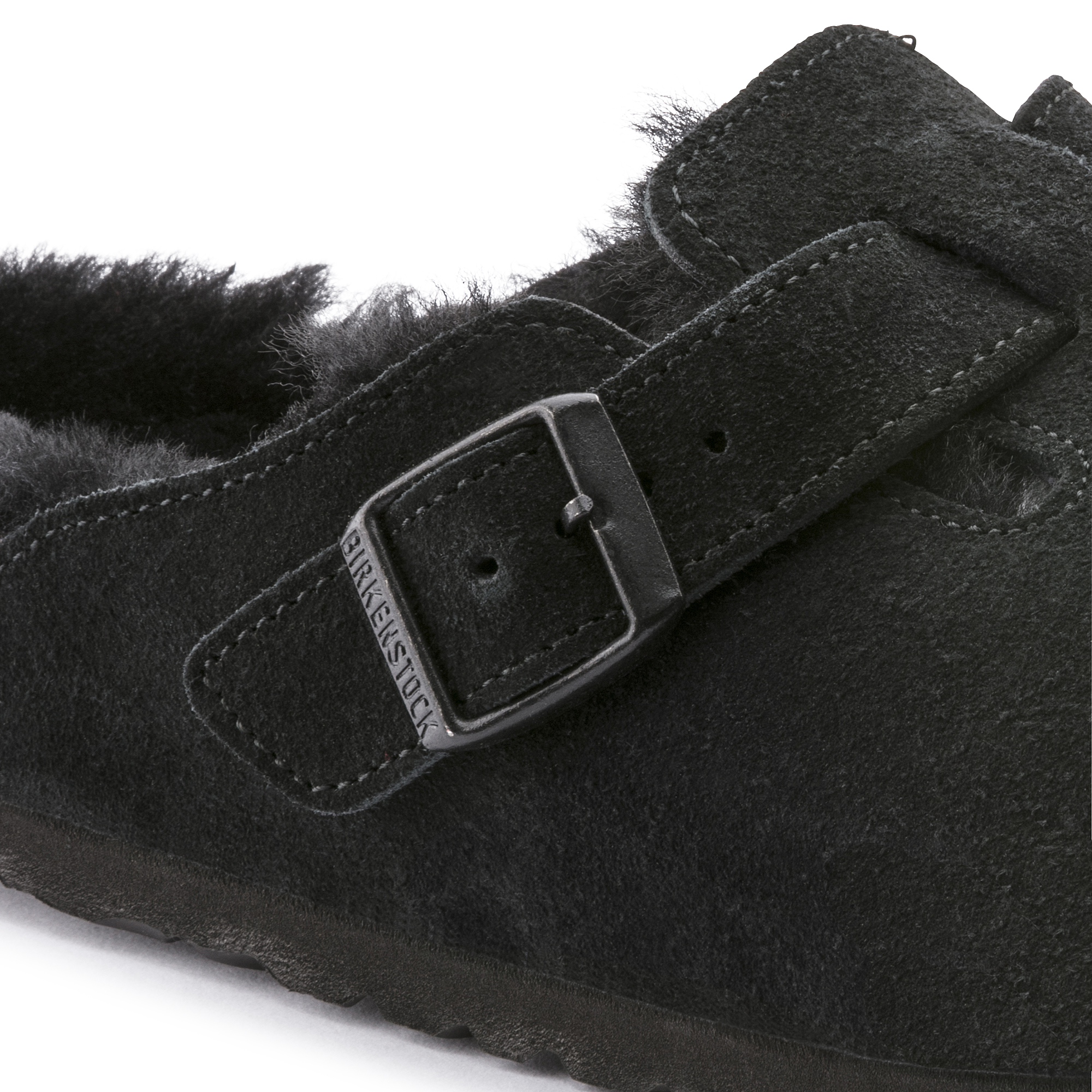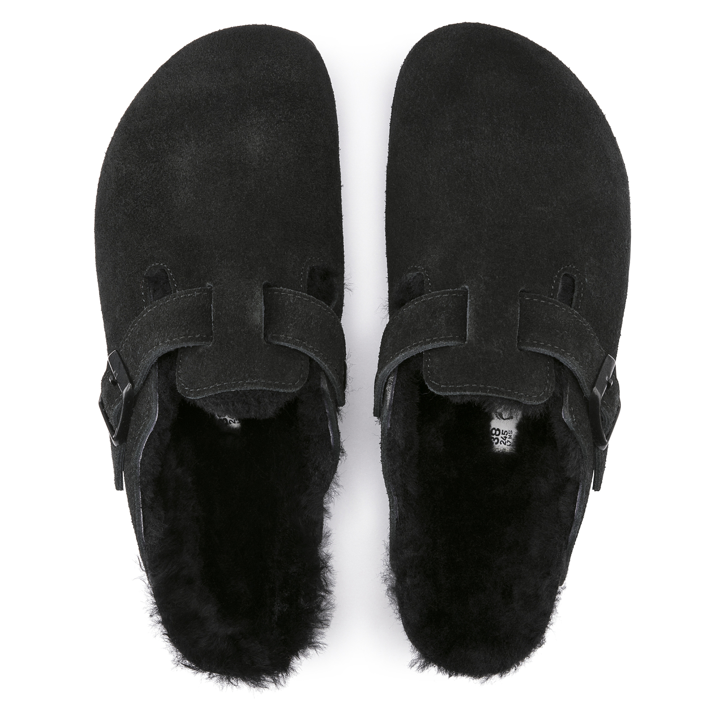 Grand classique, le sabot Boston se porte en toute saison. Ce modèle classique se présente ici dans une version très moelleuse avec une semelle de propreté en fourrure d'agneau de couleur assortie et des brides doublées de fourrure d'agneau. La chaussure idéale pour les soirées d'hiver douillettes au coin du feu ! Sa tige se compose de cuir velours doux.