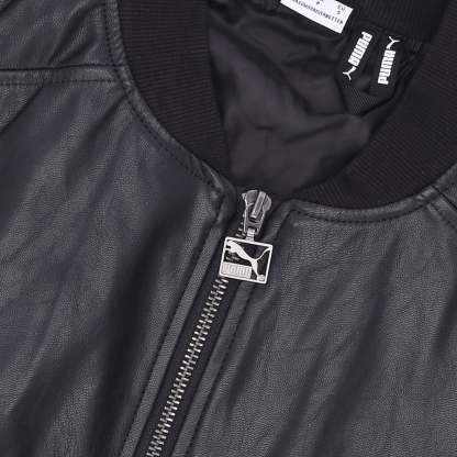 Women's T7 Oversized Faux Leather Bomber Jacket Black/dark Shadow Cat