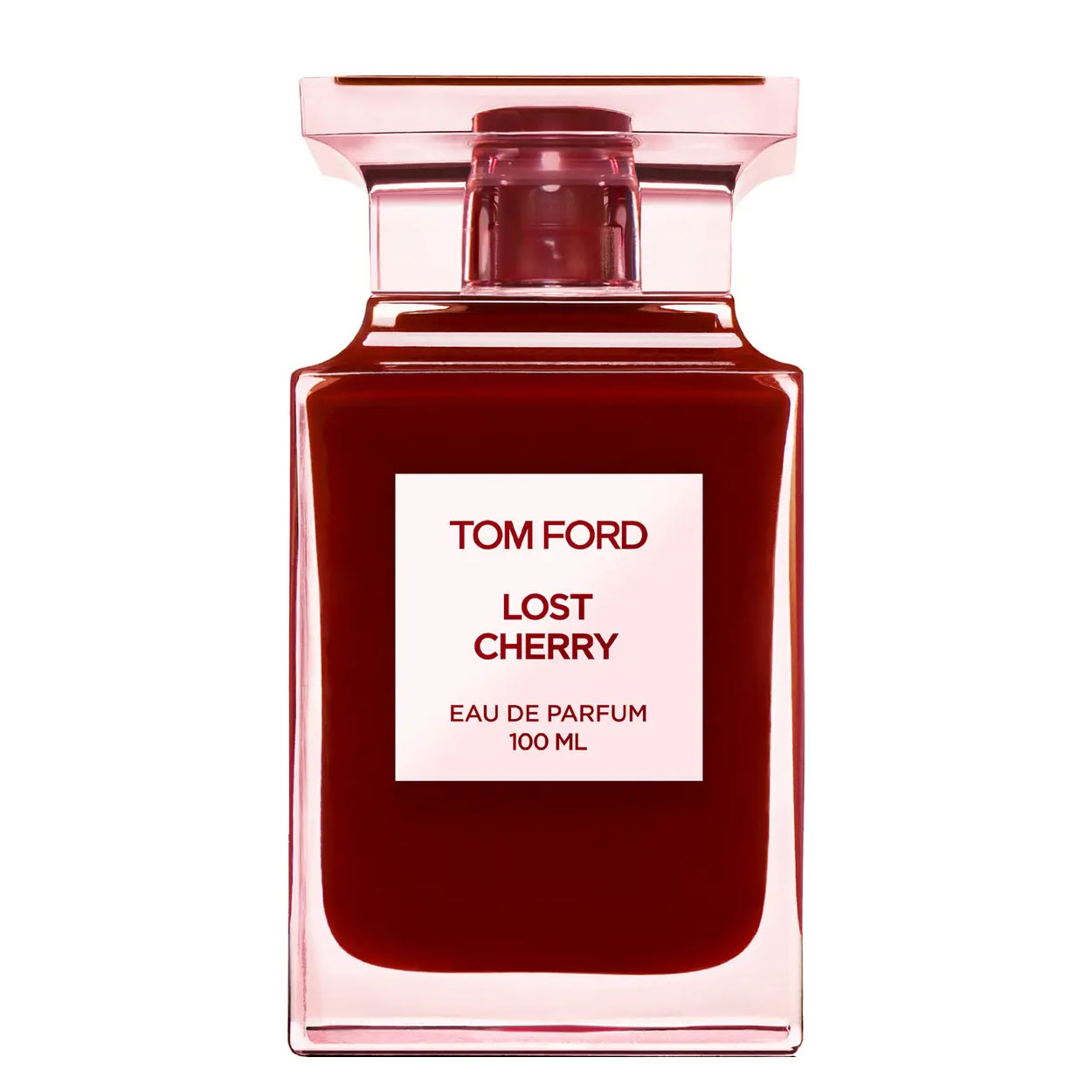 Lost Cherry is contained in a luscious, deep cherry-red bottle. Capturing the scent's dichotomy of sweet and dark, the flacon is adorned with a pale pink label, the color of cherry blossoms.