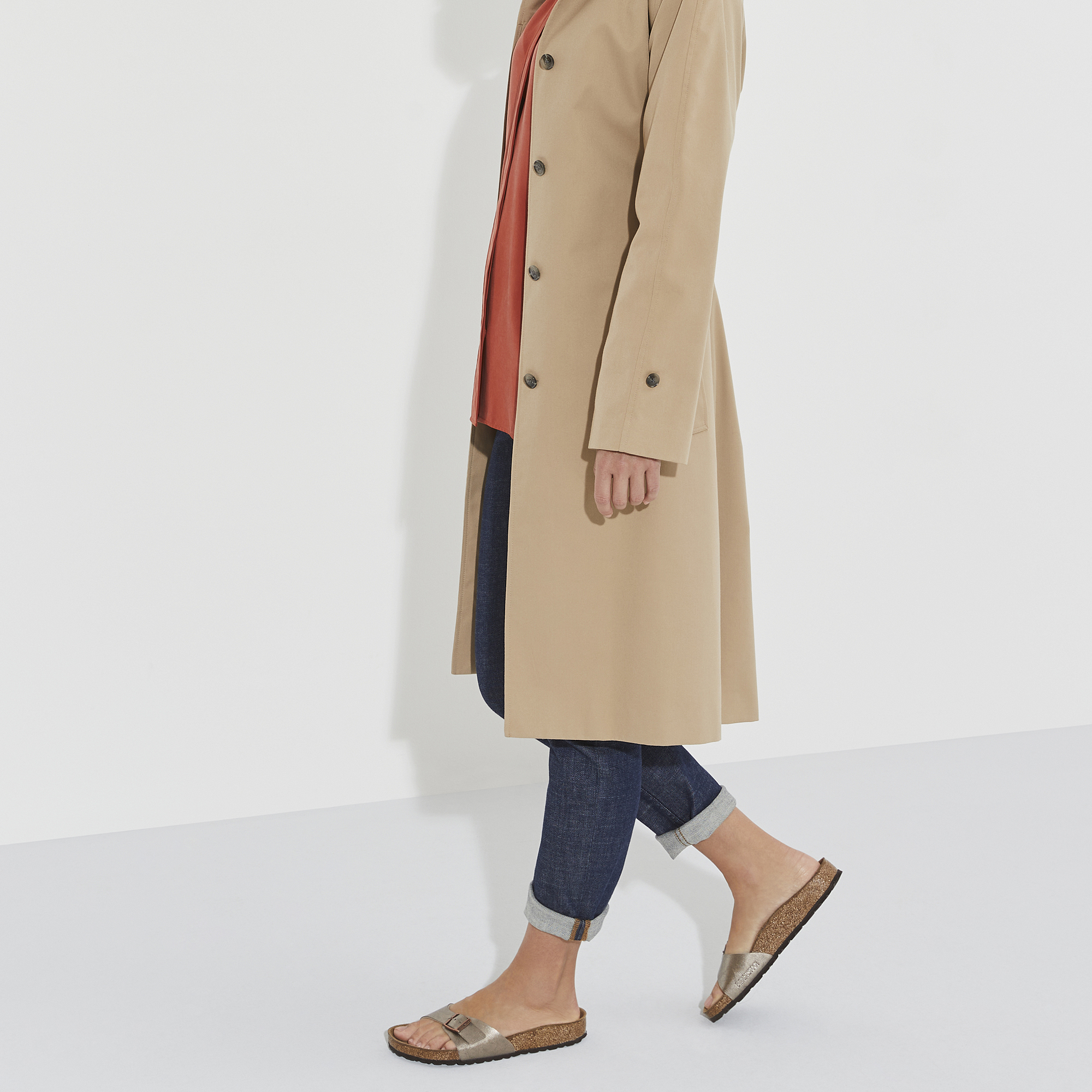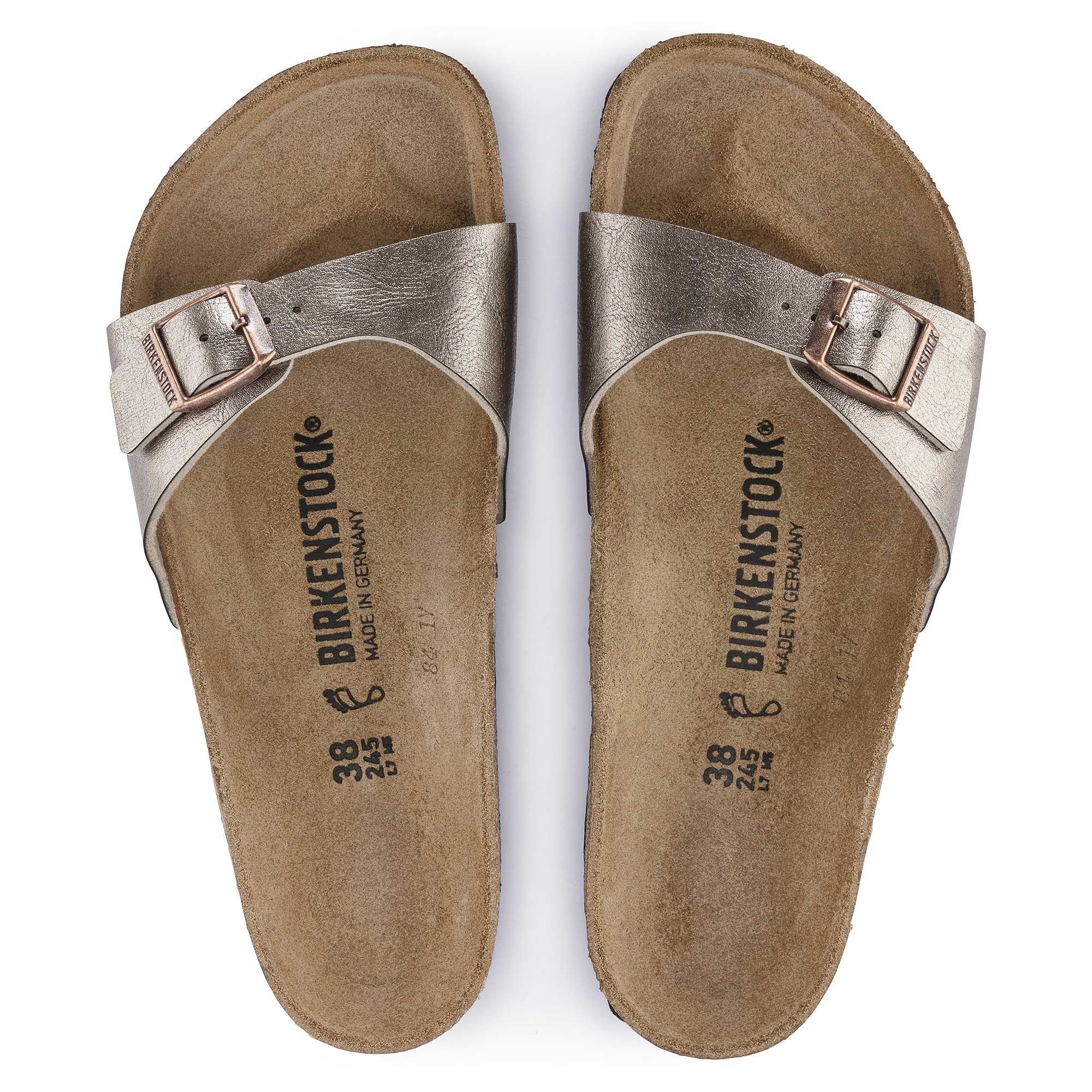 Aîné de la famille, le modèle Madrid est un vrai classique. Lancées il y a une cinquantaine d'années comme des « sandales de gymnastique », ces sandales à une bride épurées se sont peu à peu imposées comme un véritable compagnon de mode. Le dessus est en Birko-Flor®, une matière synthétique hypoallergénique et résistante.
