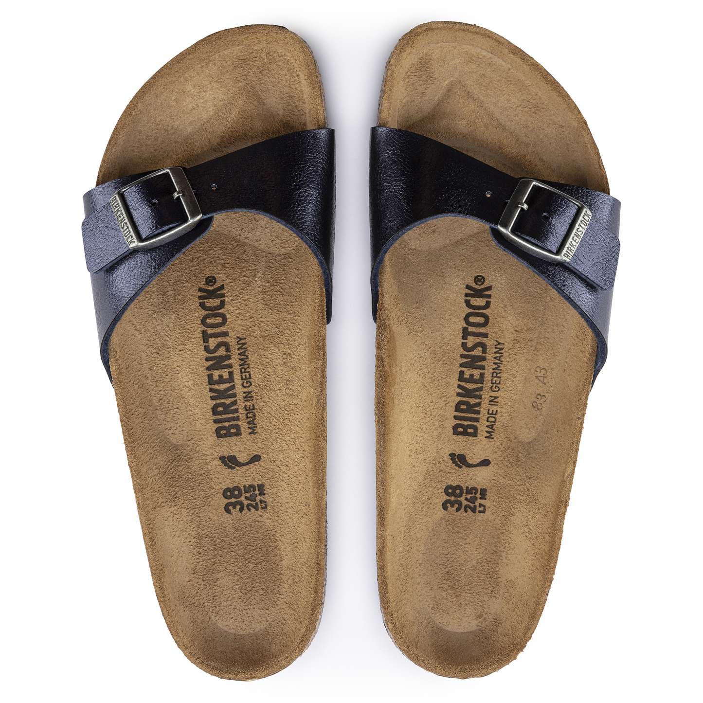 Aîné de la famille, le modèle Madrid est un vrai classique. Lancées il y a une cinquantaine d'années comme des « sandales de gymnastique », ces sandales à une bride épurées se sont peu à peu imposées comme un véritable compagnon de mode. Le dessus est en Birko-Flor®, une matière synthétique hypoallergénique et résistante.
