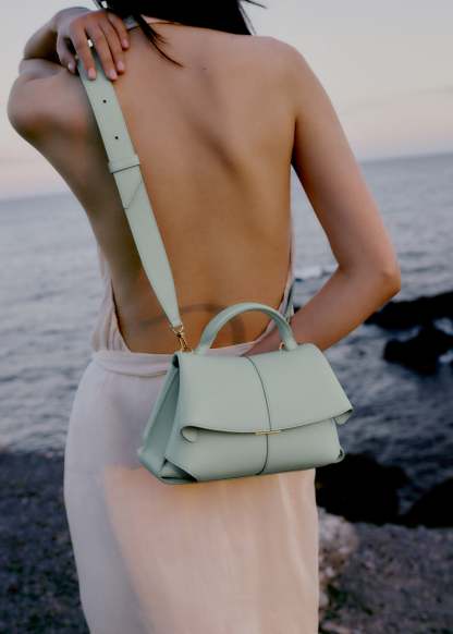 Ingeniously constructed from thirty-six leather panels, the “Mokki Mini” model celebrates the art of folding through a subtle interplay of textured and smooth leathers. The bag’s interior is divided into compartments, all protected by a flap that features an engraved clasp. With its adjustable shoulder strap held in place by snap hooks, the model smoothly adapts to your movements.