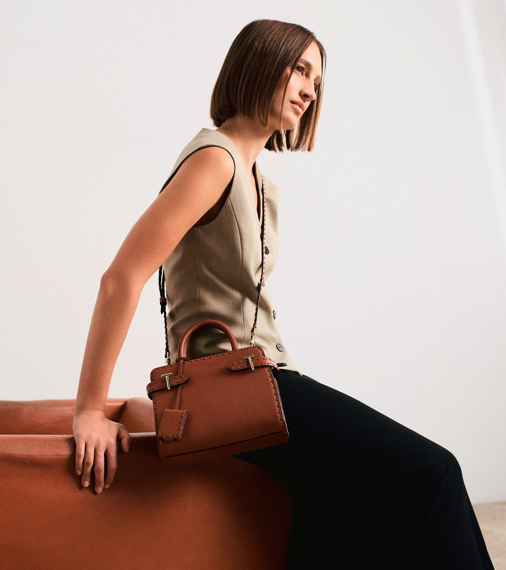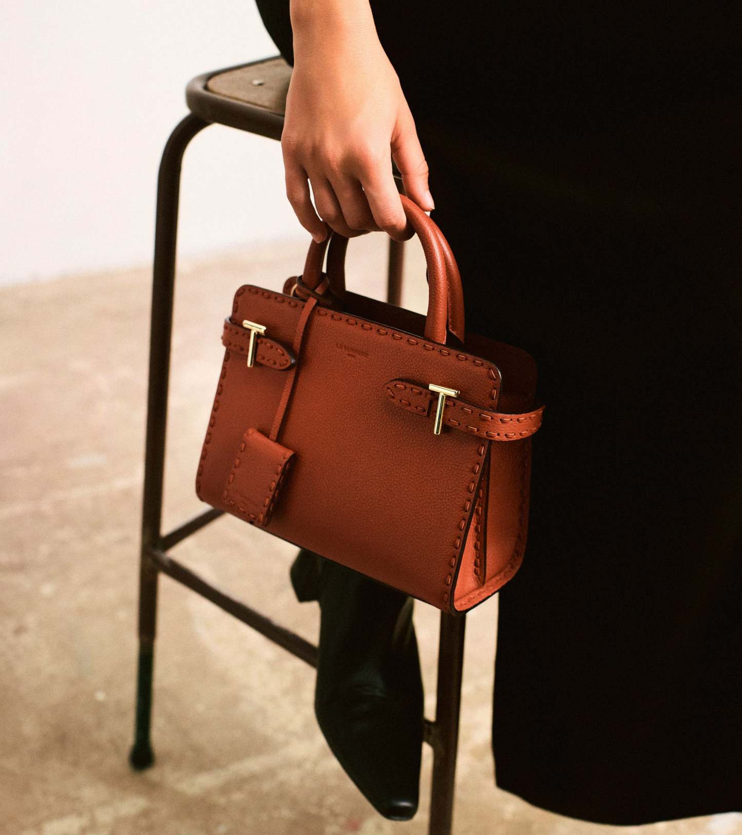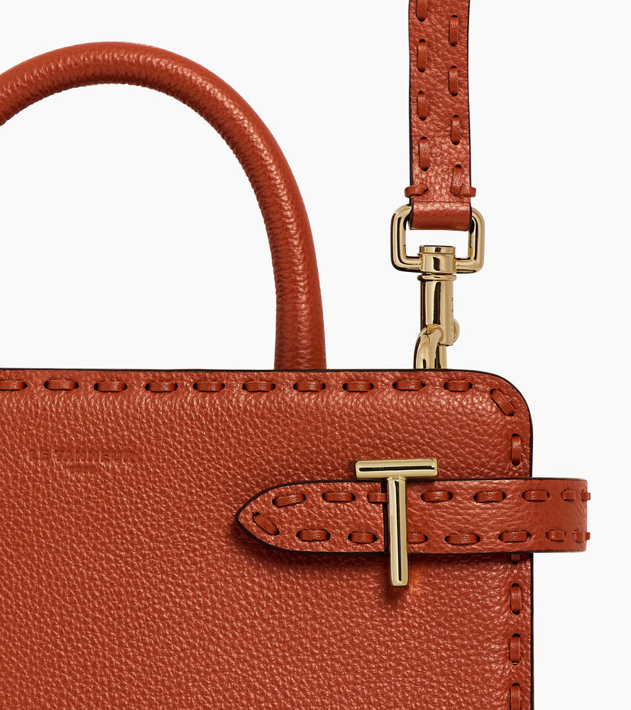 Sac à main petit modèle avec surpiqures en cuir lisse, double T signature, charms amovible et doublure jacquard anniversaire. Marquage Le Tanneur embossé ton sur ton. Porté main, épaule ou croisé grâce à sa bandoulière ajustable et amovible.