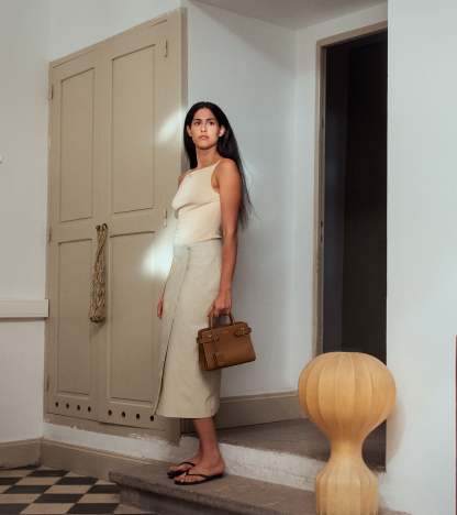 Petit sac à main rigide arbore les fermoirs T de la Maison. Il dispose de patins de protection et d'un charm amovible. Portez-le à la main, à l'épaule ou croisé grâce à sa bandoulière amovible ajustable.