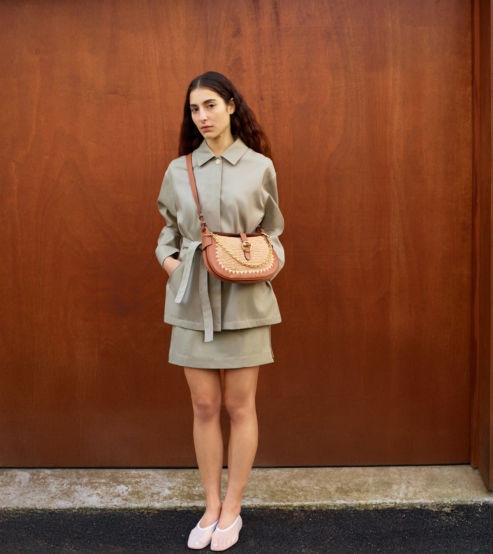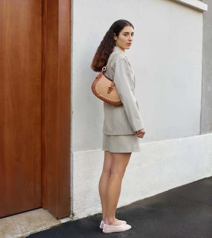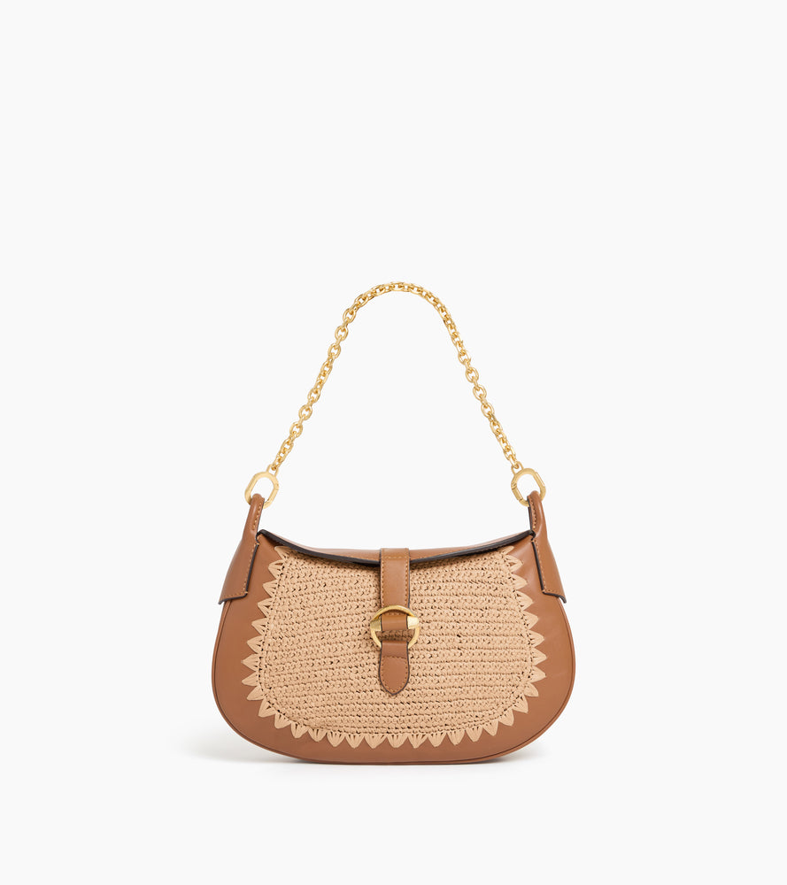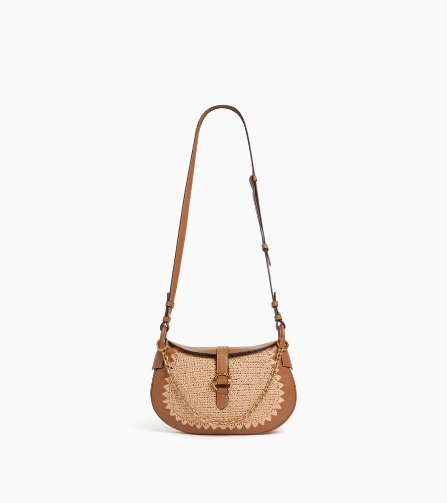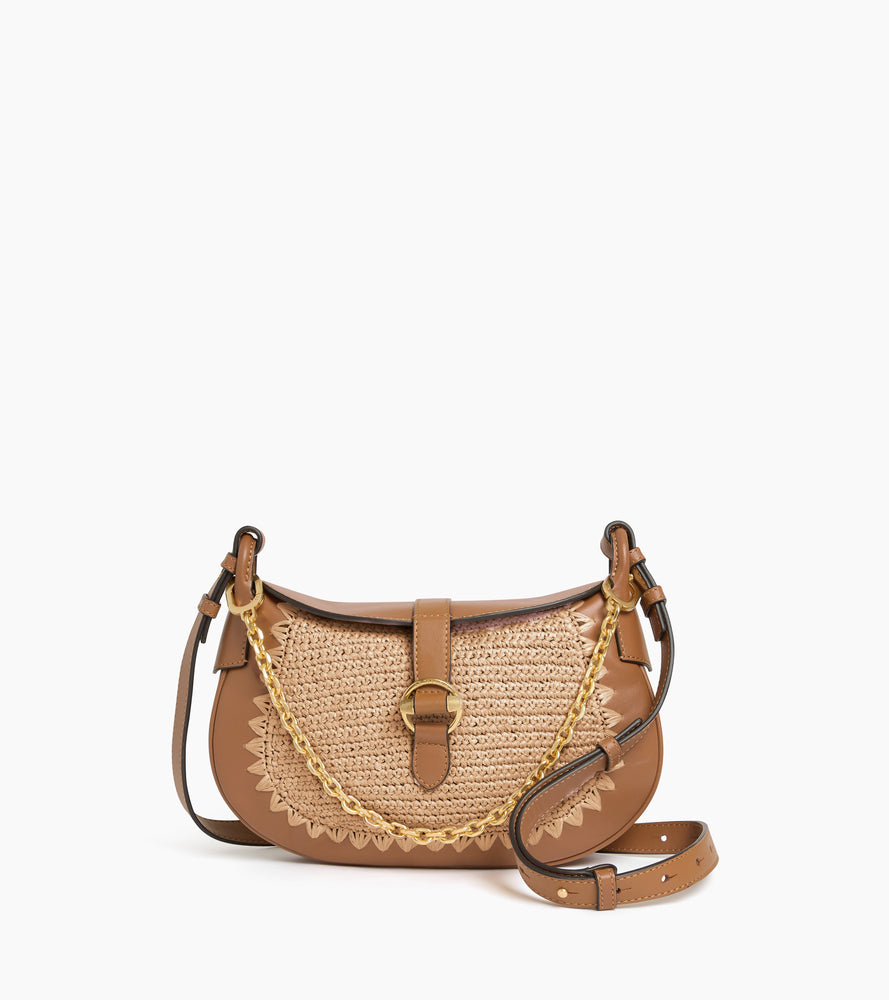Petit sac bandoulière Pia effet raphia et cuir lisse