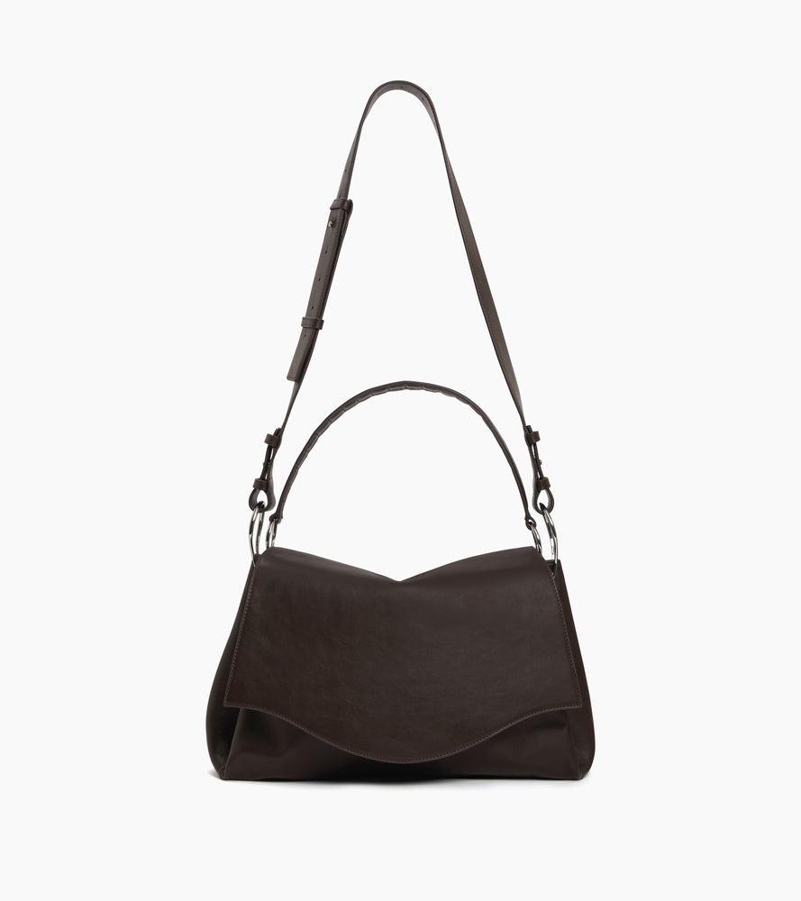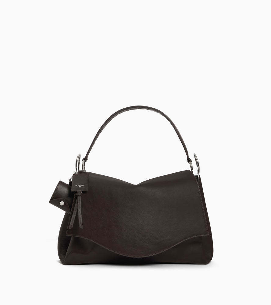Sac Le Jean souple porté croisé moyen format avec marquage signature « Jean le chat » sur film argent et éléments métalliques finition argent. Porté croisé grâce à sa bandoulière ajustable et amovible. Les charms ne sont pas vendus avec le sac.