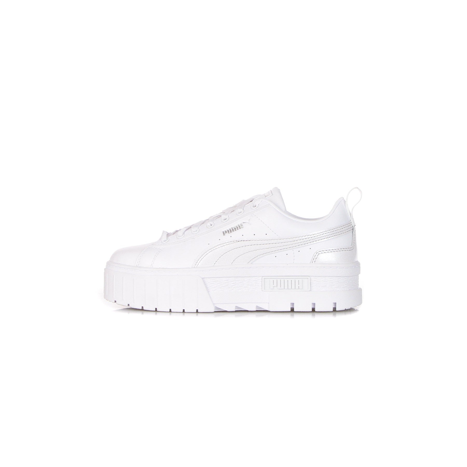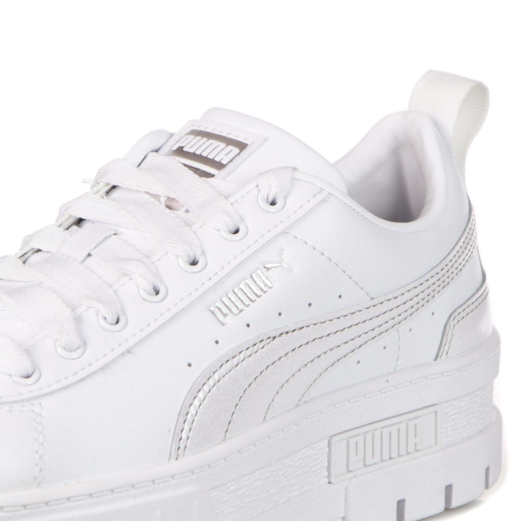 Bright Puma logo on patch sewn on tongue, debossed on upper and rubberized on midsole