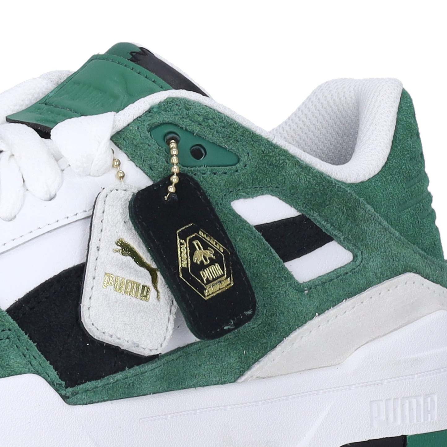 Puma Cat logo printed on the heel reinforcement and Puma contoured stripe sewn on the sides